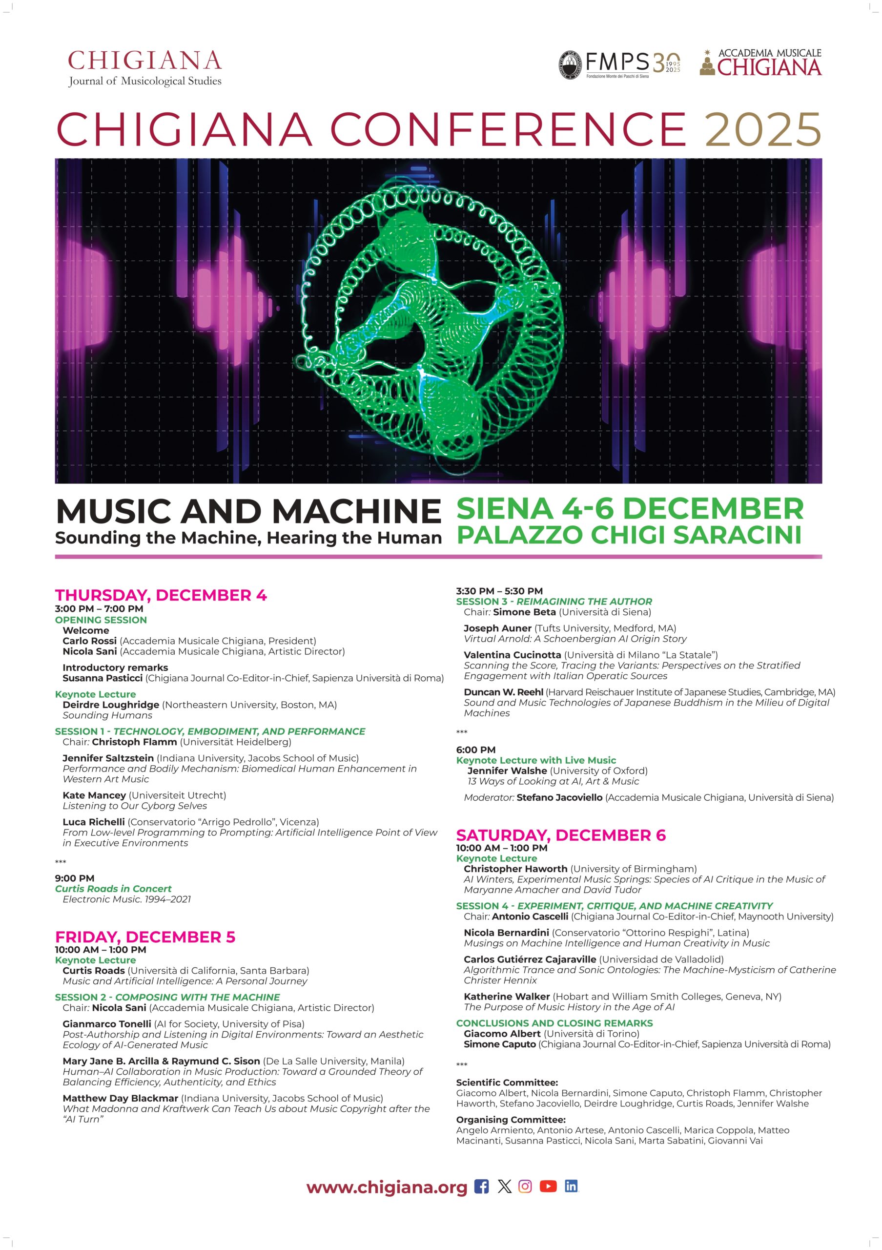 INFORMATION PRIVACY AND DATA PROTECTION - Pursuant to ex art. 13-14 GDPR EU / 2016/679 ADJUSTMENT OF THE EUROPEAN REGULATION, we inform you that the data provided will be collected by the ACCADEMIA MUSICALE CHIGIANA FOUNDATION for the purposes of managing the conference and will be processed within the limits and in compliance with the provisions of the aforementioned decree. The provision of data is voluntary for the purposes of participation in the conference; any refusal to provide personal data, or failure to authorize the processing of sensitive data, will make it impossible to receive communications relating to the event. The owner of the processing of personal data is the Chigiana Academy of Music Foundation of Siena, with headquarters in Via di Città, 89 - Siena. The undersigned, identified as a subject concerned by the processing of personal data, declares to have received from the Data Controller FONDAZIONE ACADEMIA MUSICALE CHIGIANA VIA DI CITTA '89 53100 SIENA the information pursuant to articles 13-14 EU reg 2016/679 which can also be consulted on the Chigiana website, https://www.chigiana.org/wp-content/uploads/Informativa-generica.pdf. We ask therefore for your consent.